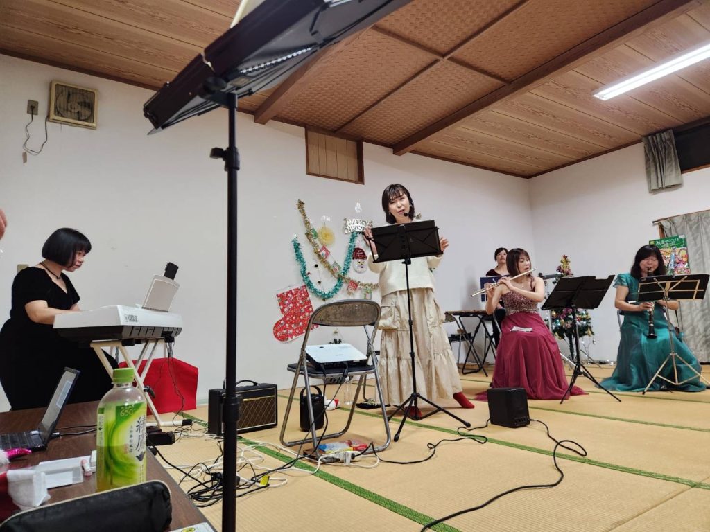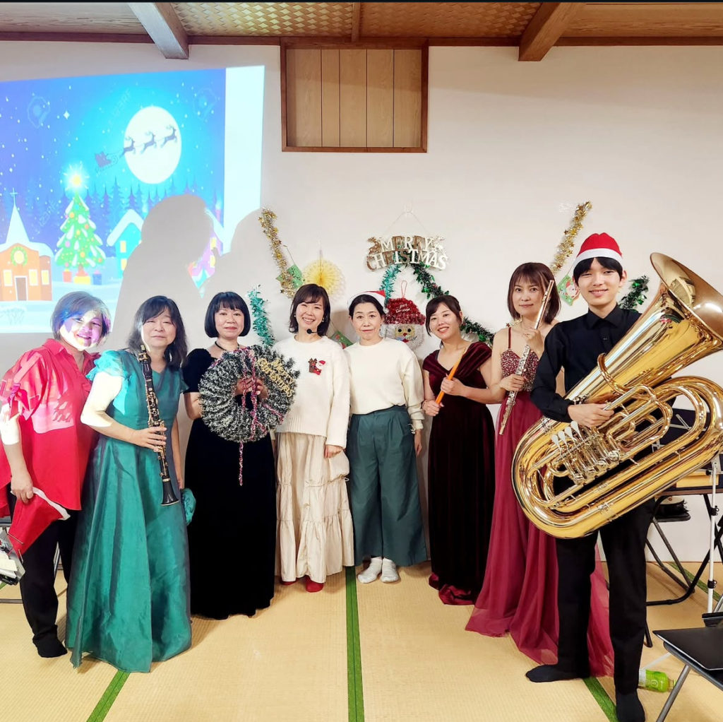 演奏現場 12月の演奏活動 music.nina.fu 2026年1月26日 順不同ですが、 高森町のお寺での演奏♡ えほんがくだん 子ども食堂♡クリスマスコンサート 最後は第九!!!急きょピンチヒッターで演奏させていただきました。 ソリストのお友達と♡ Instagram